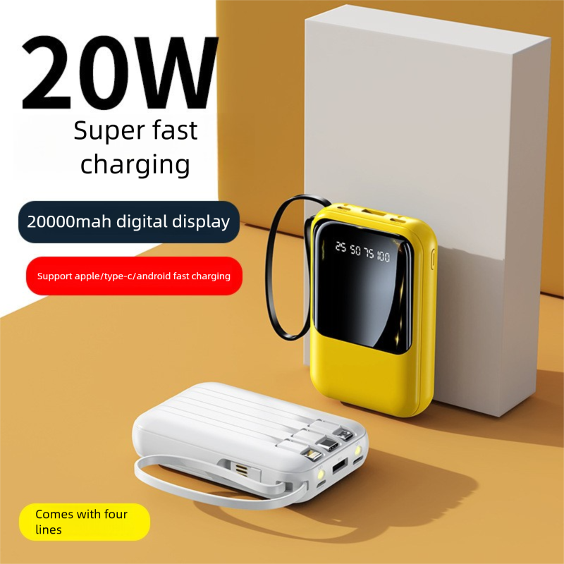 20000mAh Power Bank Ultra-Thin Compact Portable with Four Cables Customizable Gift