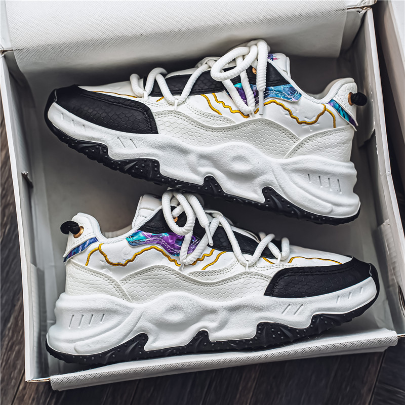 2024 herfst nieuwe lage top dikke zool vader trendy student leren gezicht niche casual sport herenschoenen