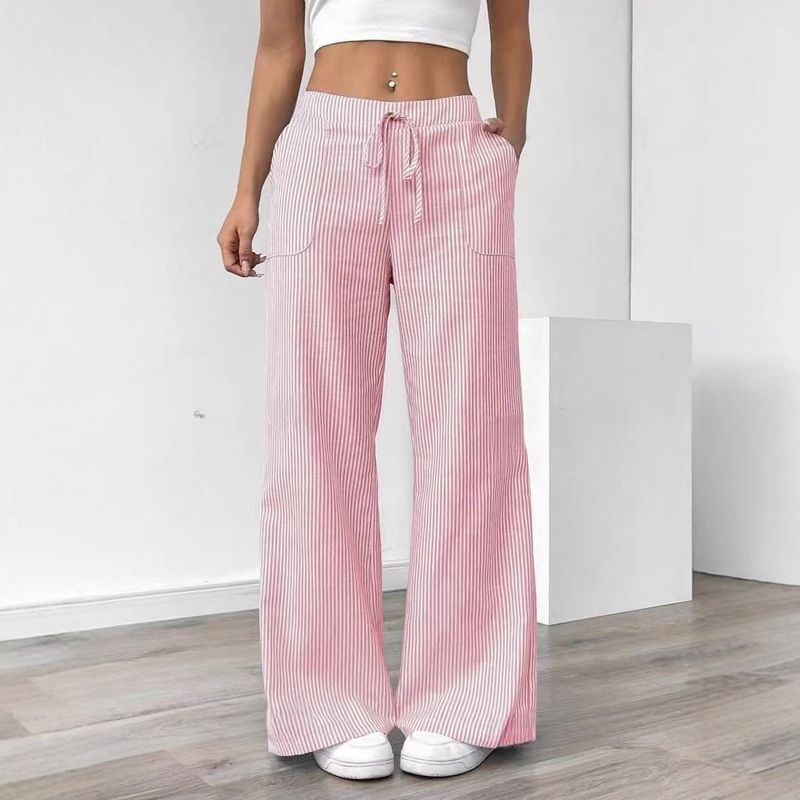 2025 Spring/Summer New Comfortable Casual Drawstring Pocket Slimming Striped Wide-leg Pants