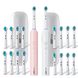 2-pack elektrische tandenborstel voor volwassenen, kleine ronde kop, draaibare, oplaadbare elektrische tandenborstel met 8 vervangende opzetborstels