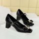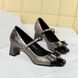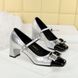 Popular elements: Fashionable banquet versatile commuting professional OL color blocked square head metal buckle bow Mary Jane