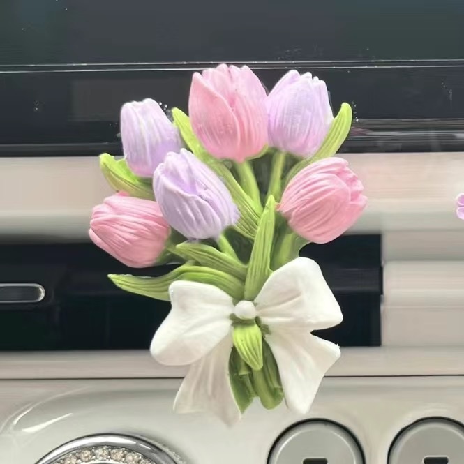 Niche Tulip Car Air Freshener Diffuser Stone Elegant Flower Car Air Vent Decoration Pendant Butterfly Light Fragrance