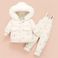Baby winter donsjackset met vleugels - warme, dikke sneeuwpak met capuchon voor peuters (80-100 cm, roze/beige/lichtgroen)