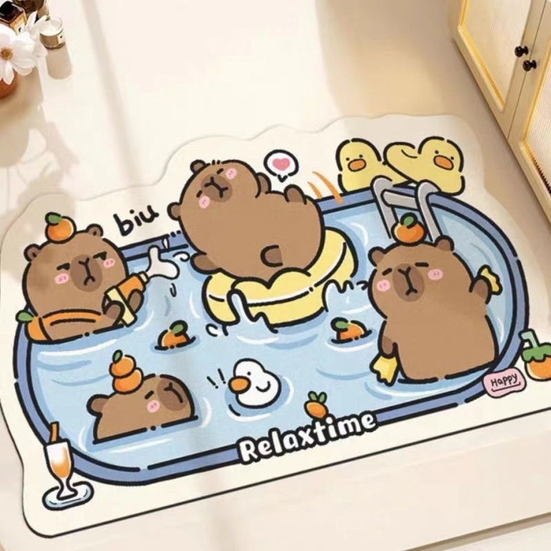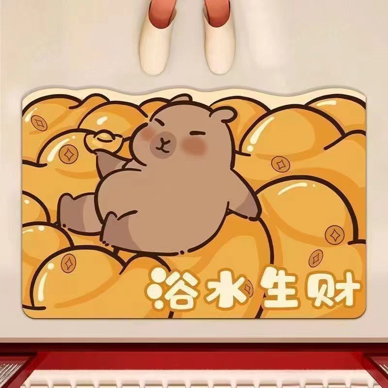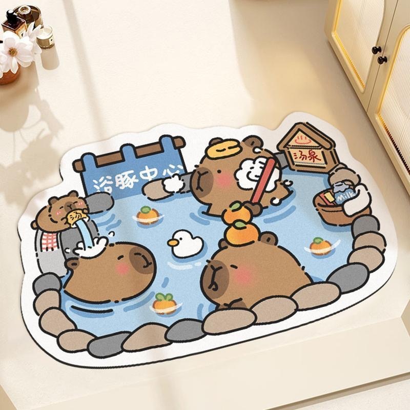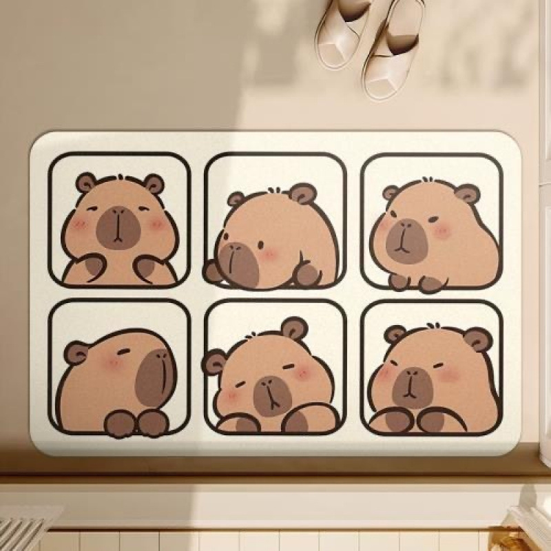 Capybara Guinea Pig Bathroom Absorbent Floor Mat, Dirt-resistant Non-slip Doorway Mat, Durable and Easy to Clean, Wholesale