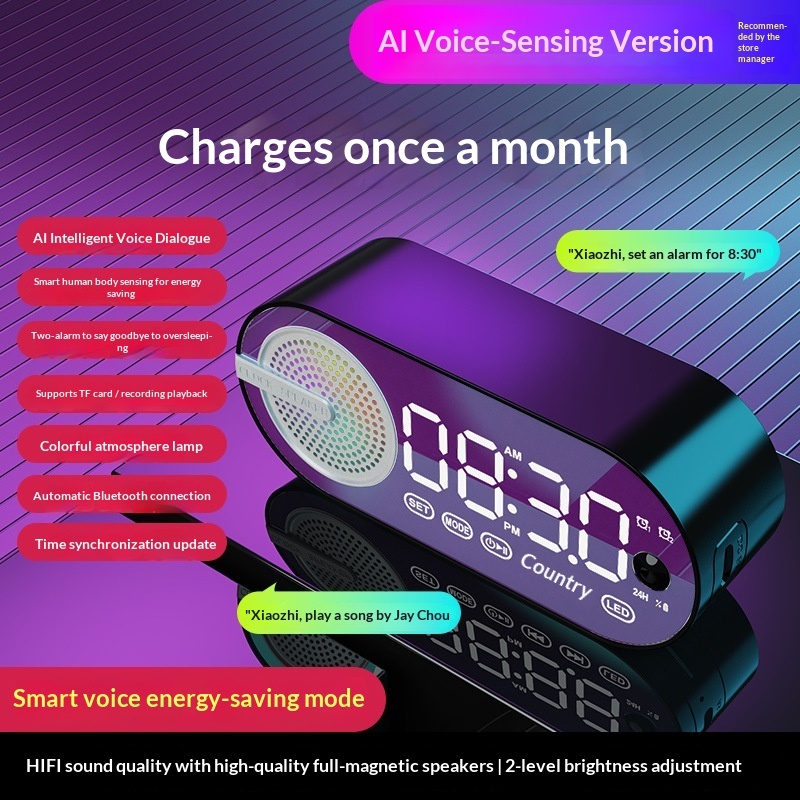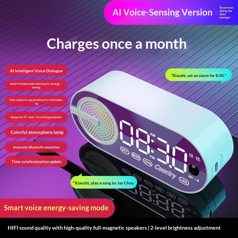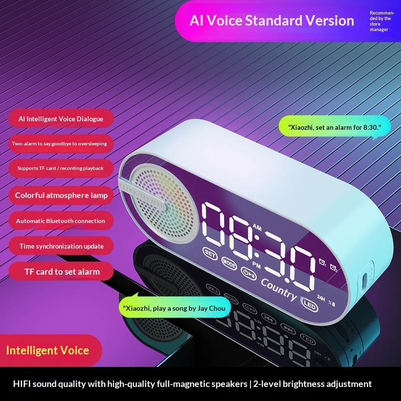 Bluetooth Speaker Alarm Clock for Students, Simple Bedroom Night Light, Rechargeable and Portable