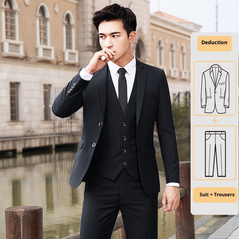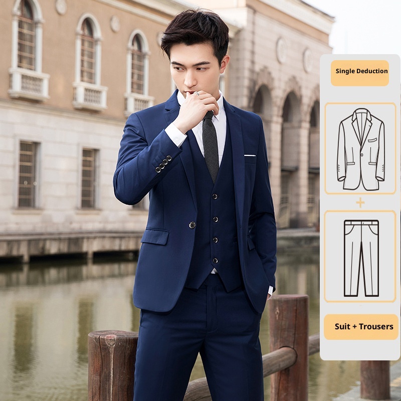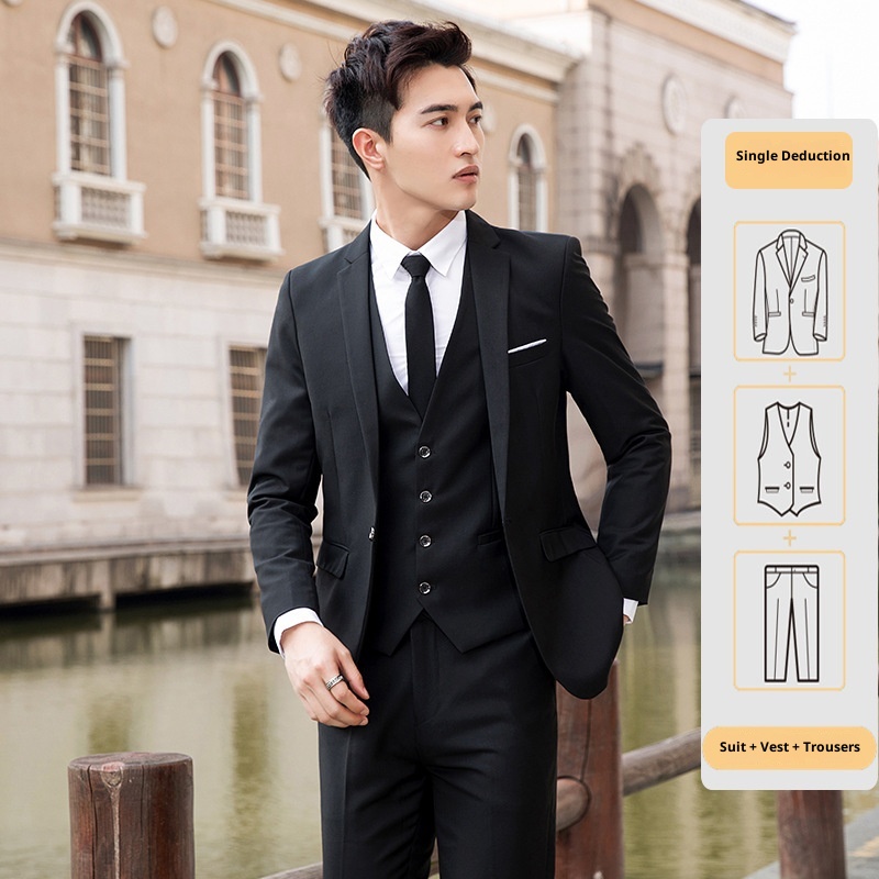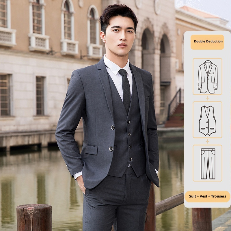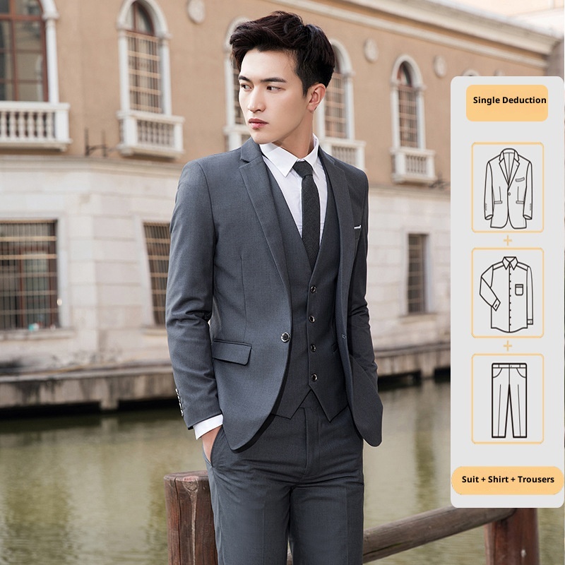 Jongens heren lente- en herfstset, Koreaans slim fit professioneel formeel pak, driedelig pak voor heren, bruidsjonker