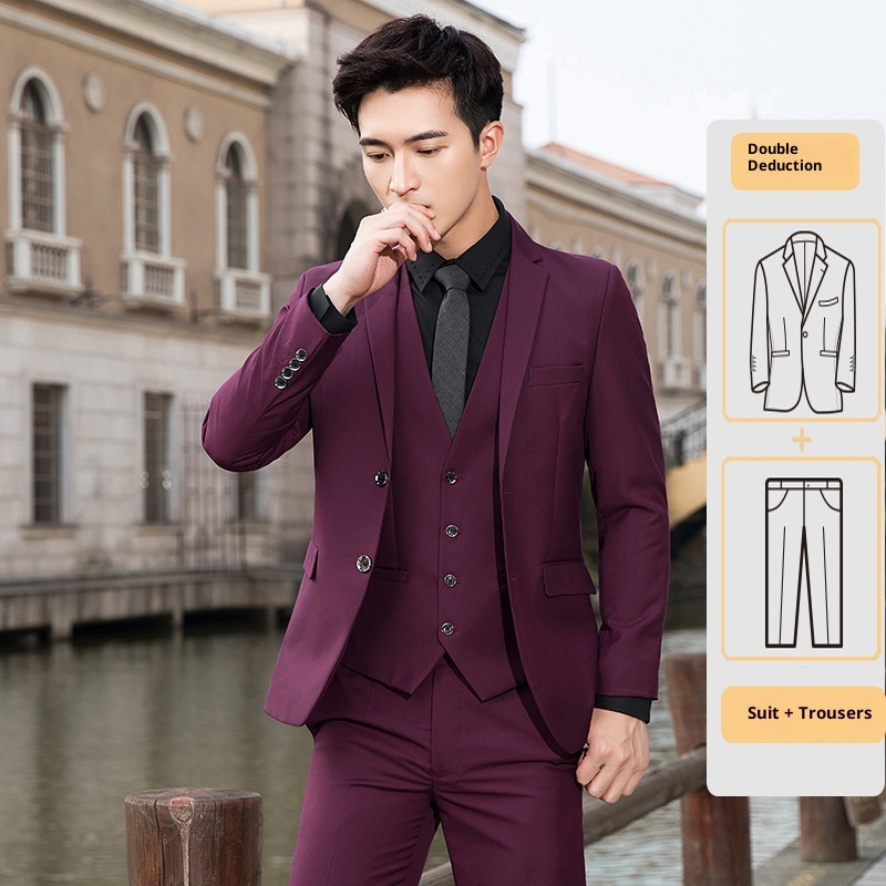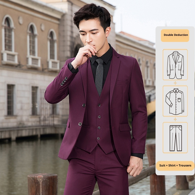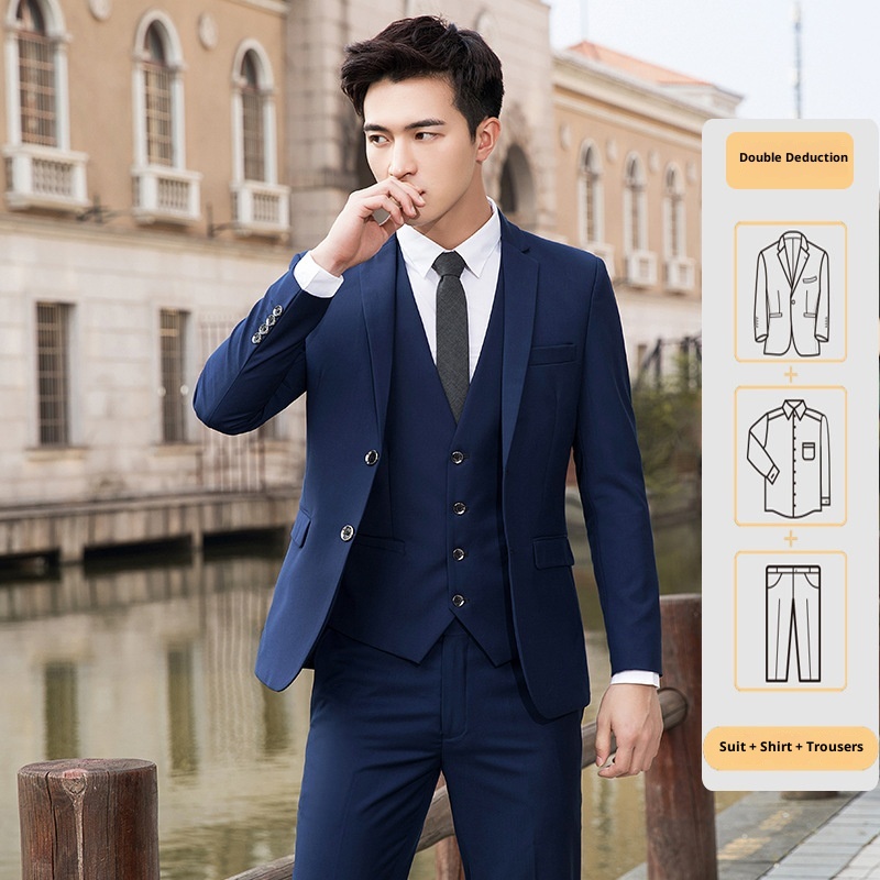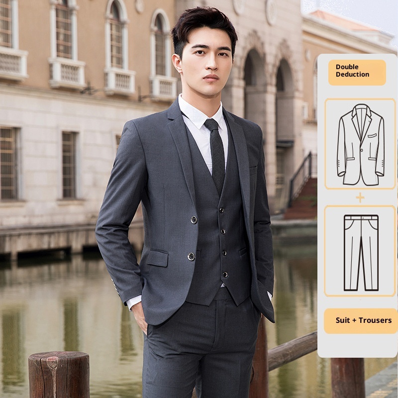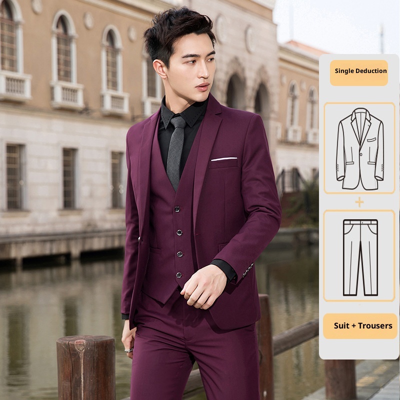 Jongens heren lente- en herfstset, Koreaans slim fit professioneel formeel pak, driedelig pak voor heren, bruidsjonker
