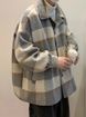 Herfst- en wintergeruite wollen jas voor mannen en vrouwen, Japanse retro revers casual jas