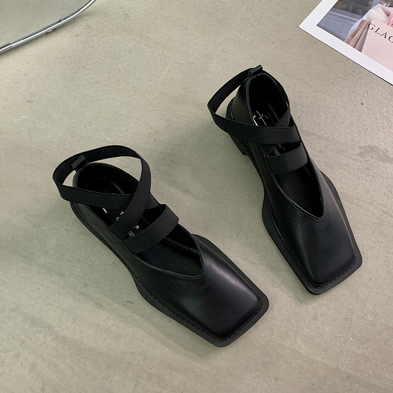 Enkele schoenen Dames veterstijl Vierkant hoofd Low Mary Casual Soft Top Middelhoge hak Balletdans