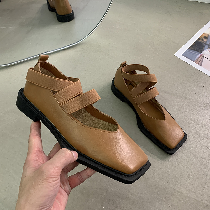 Ballet Dance Shoes Single Shoes Women's Lacing Style Square Head Low Heel Mary Casual Soft Top Middle Heel Ballet Dance
