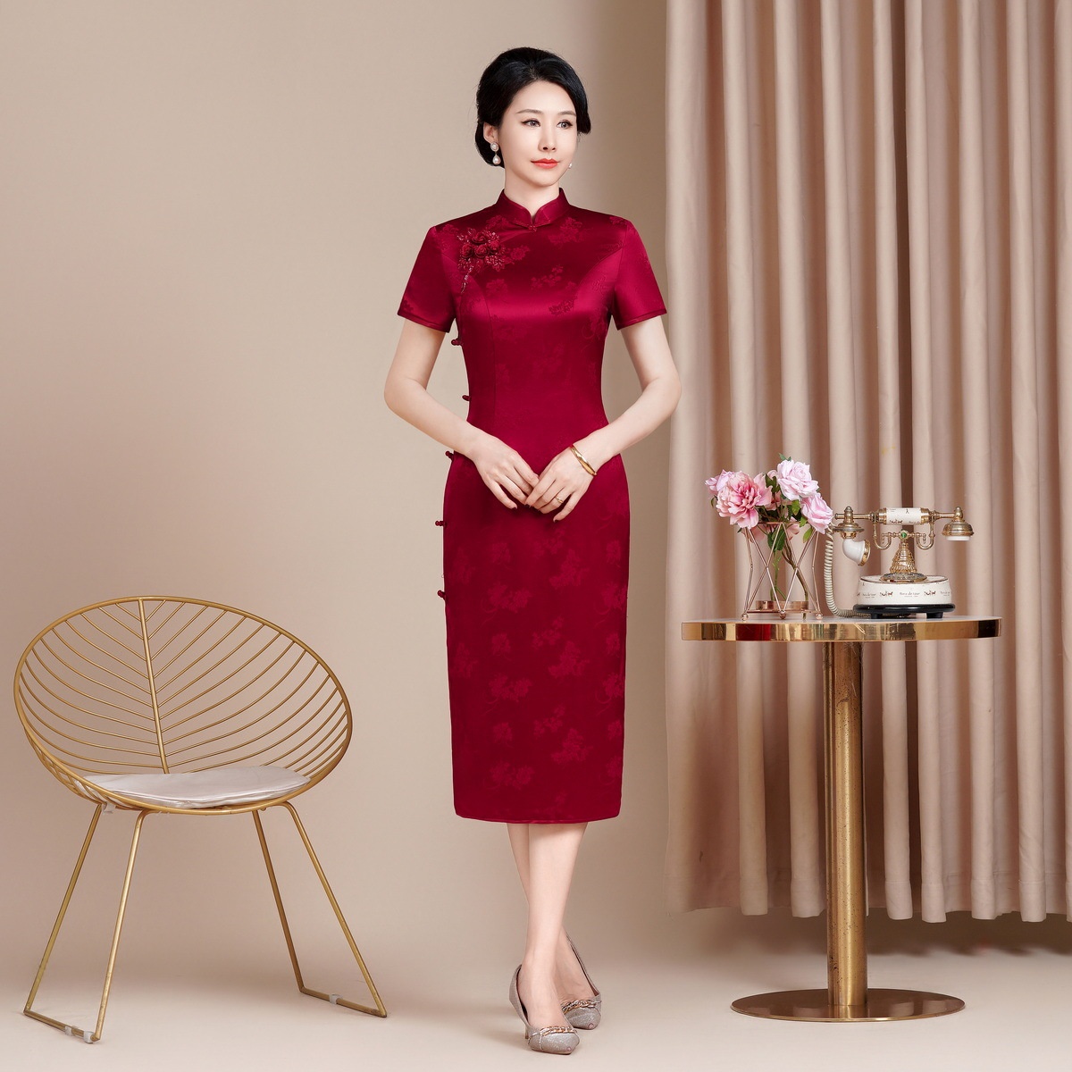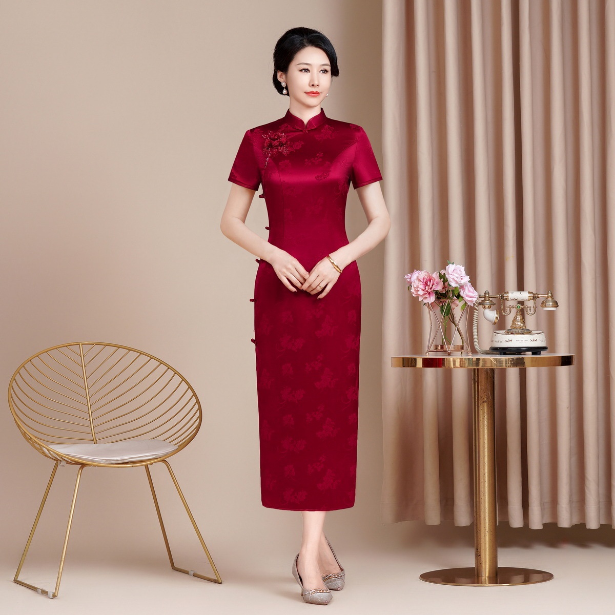 ChicShe ChicShe Herfst Nieuwe Vintage Verbeterde Cheongsam Voor Vrouwen, High-End Gevoel, Outfit voor Middelbare En Oudere Moeders, Oma's