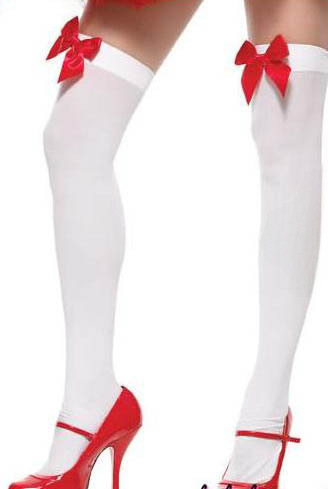 Sexy Rode Strik Witte Kousen Fluwelen Over-de-Knie Kousen Micro-through 80D Dames Dijkousen Kousen