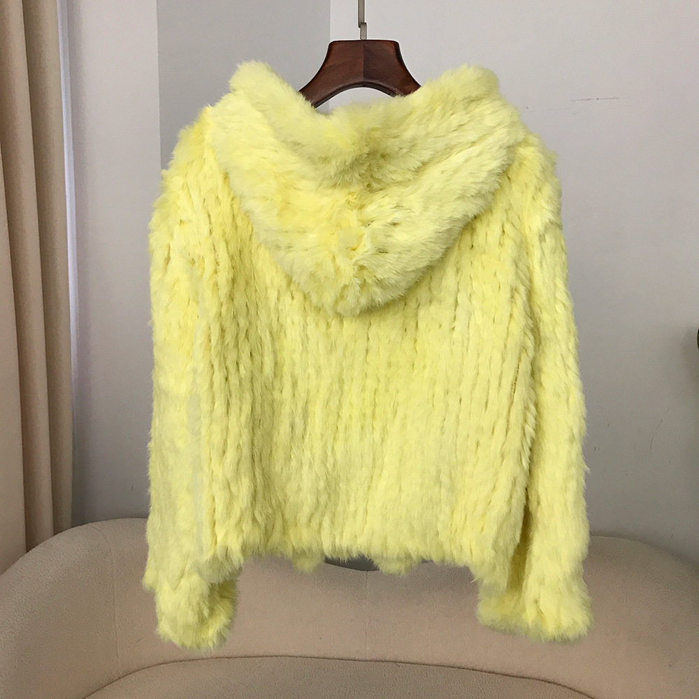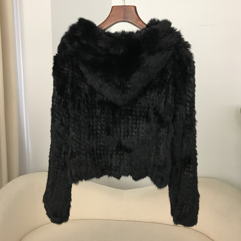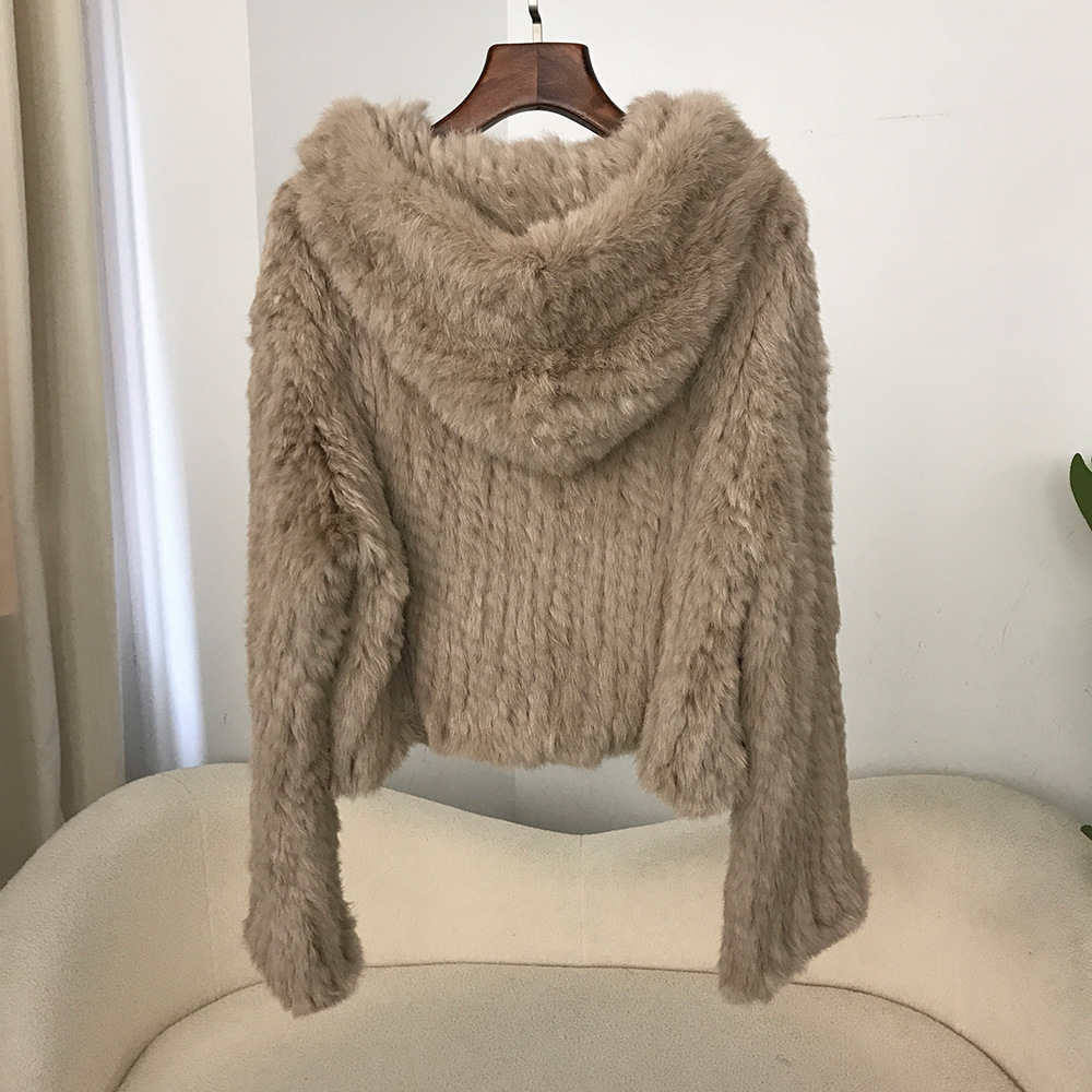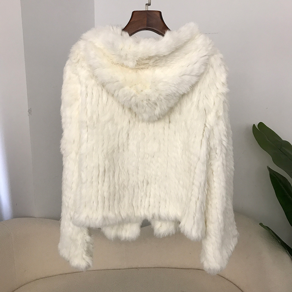 Dameskleding Nieuwe herfst en winter Versleutelde verdikte handgemaakte dubbelzijdig geweven capuchon korte konijnenbontjas voor vrouwen Jonge stijl