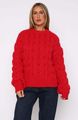 Dameskleding Dames Oversized Kabeltrui - Grof Geribbelde Trui (Rood/Grijs/Crème, S/M/L/XL)