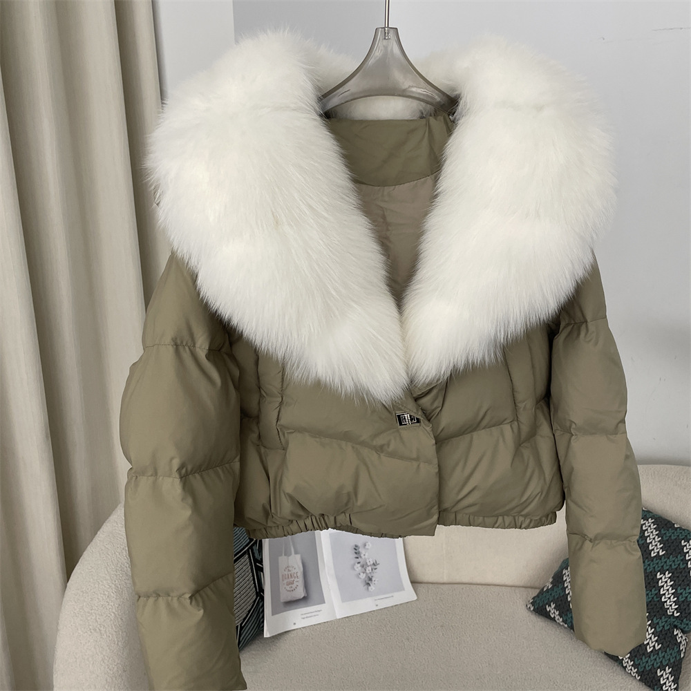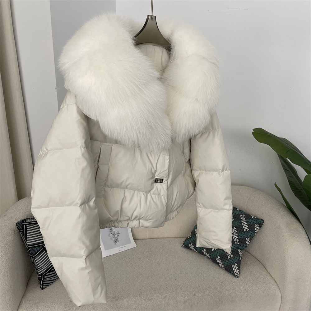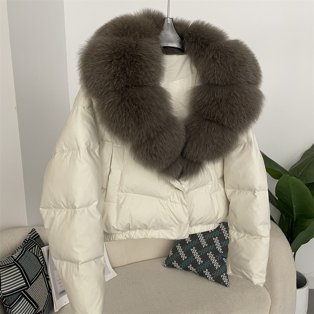 Dameskleding Winter nieuwe stijl dames korte modieuze warme donsjas kleine maat stijlvolle oversized echte vossenbontkraag jas