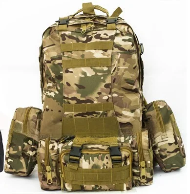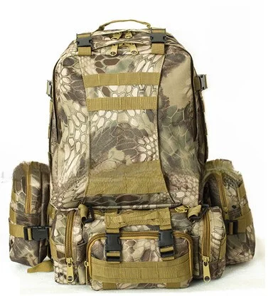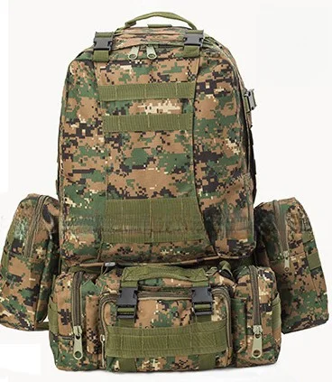 Duurzame 55L camouflage bergbeklimmerstas voor heren en dames, outdoor rugzak met hoge capaciteit, combinatierugzak, wandel- en fietstas
