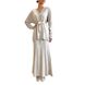Elegante effen blazer en rokset voor dames, lange mouwen, knoopjesjasje met midi-rok, lente-kantoorkleding, grote maten (Xs-Xxxl)