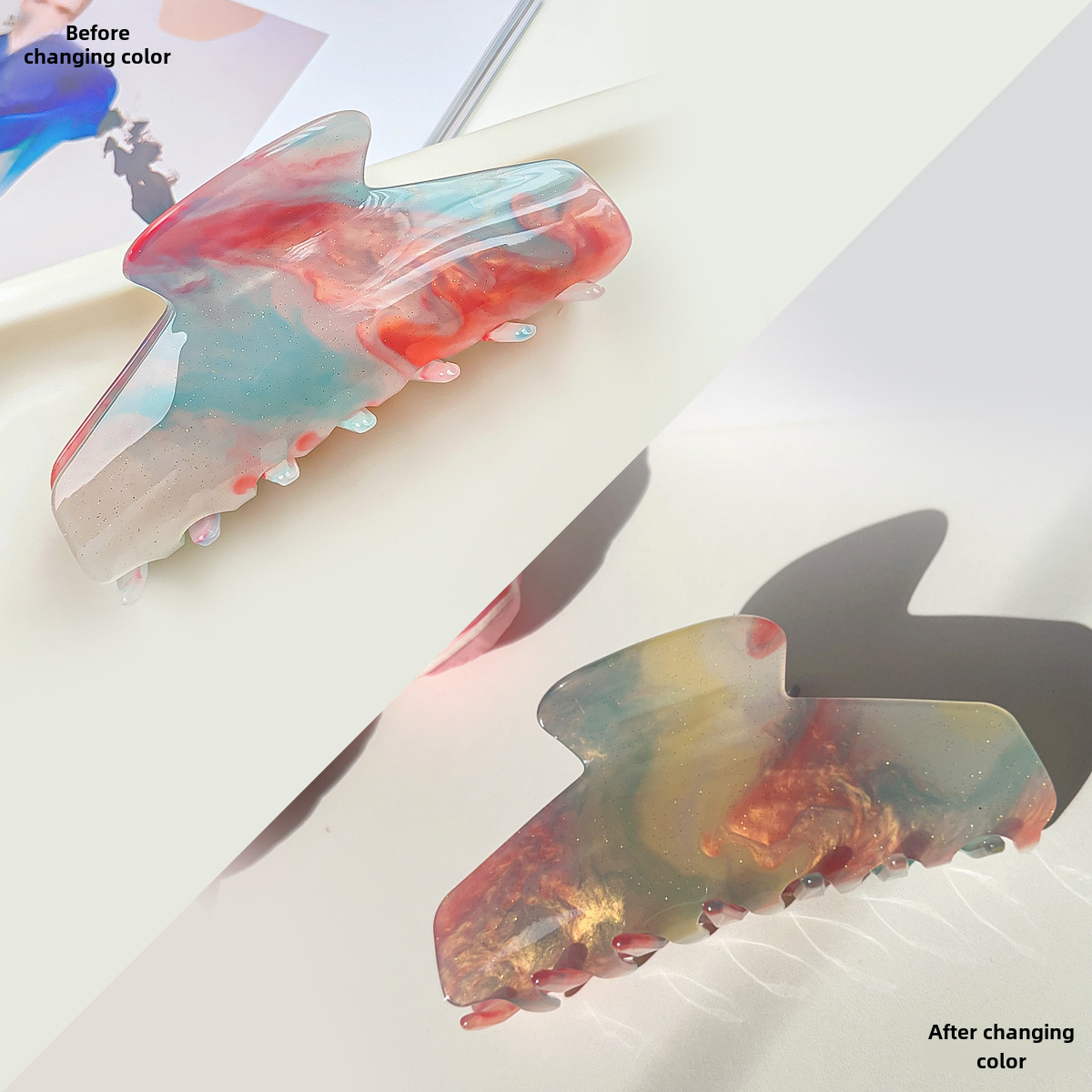 Koreaanse stijl Kleurveranderende Grab Clip Acryl Grote Haai Clip Zoete Elegante Haarclip Vrouwen Haar Achterkant Hoofd Haar Grijp Haarclip