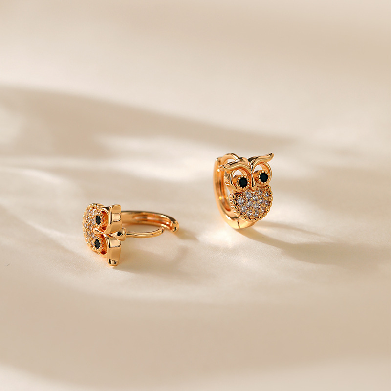 Dierlijke uil oor gesp zirkoon prachtige kleine oorbellen koper verguld K goud uniek ontwerp niche oorbellen