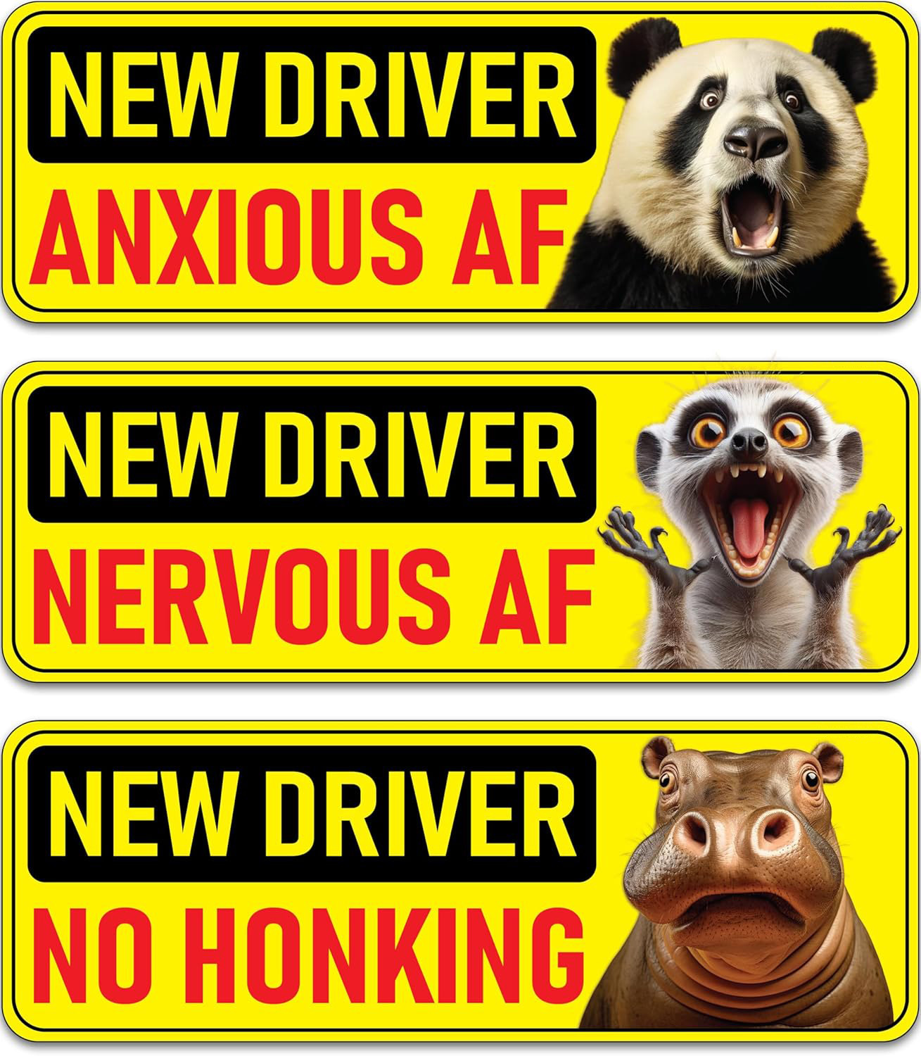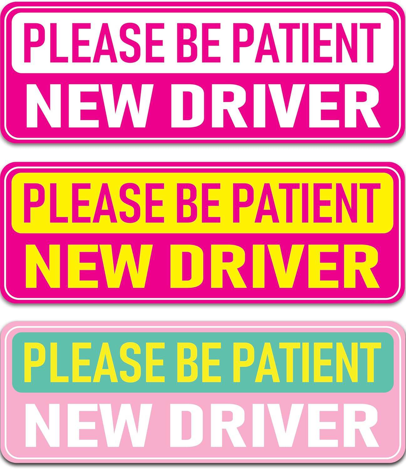 Grappige roze magnetische autosticker voor beginnende bestuurders, reflecterende autosticker voor nieuwe bestuurders, 3 stuks