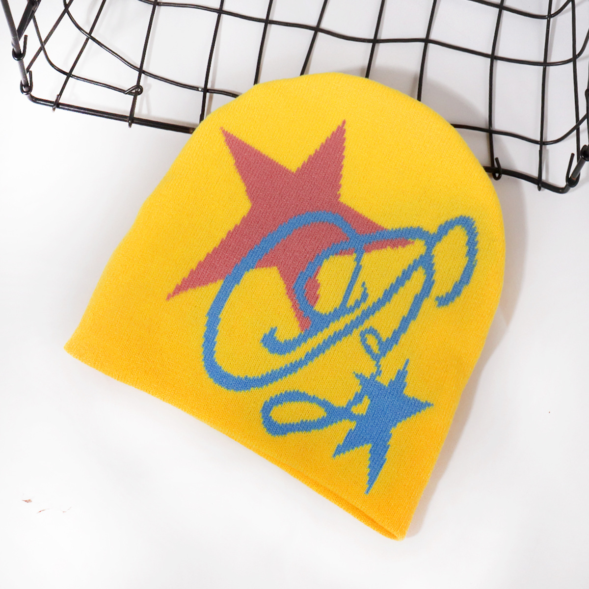 Herenmutsen vijfpuntige sterpatroon gebreide muts persoonlijkheid trend mode herfst en winter buitensporten koude bescherming