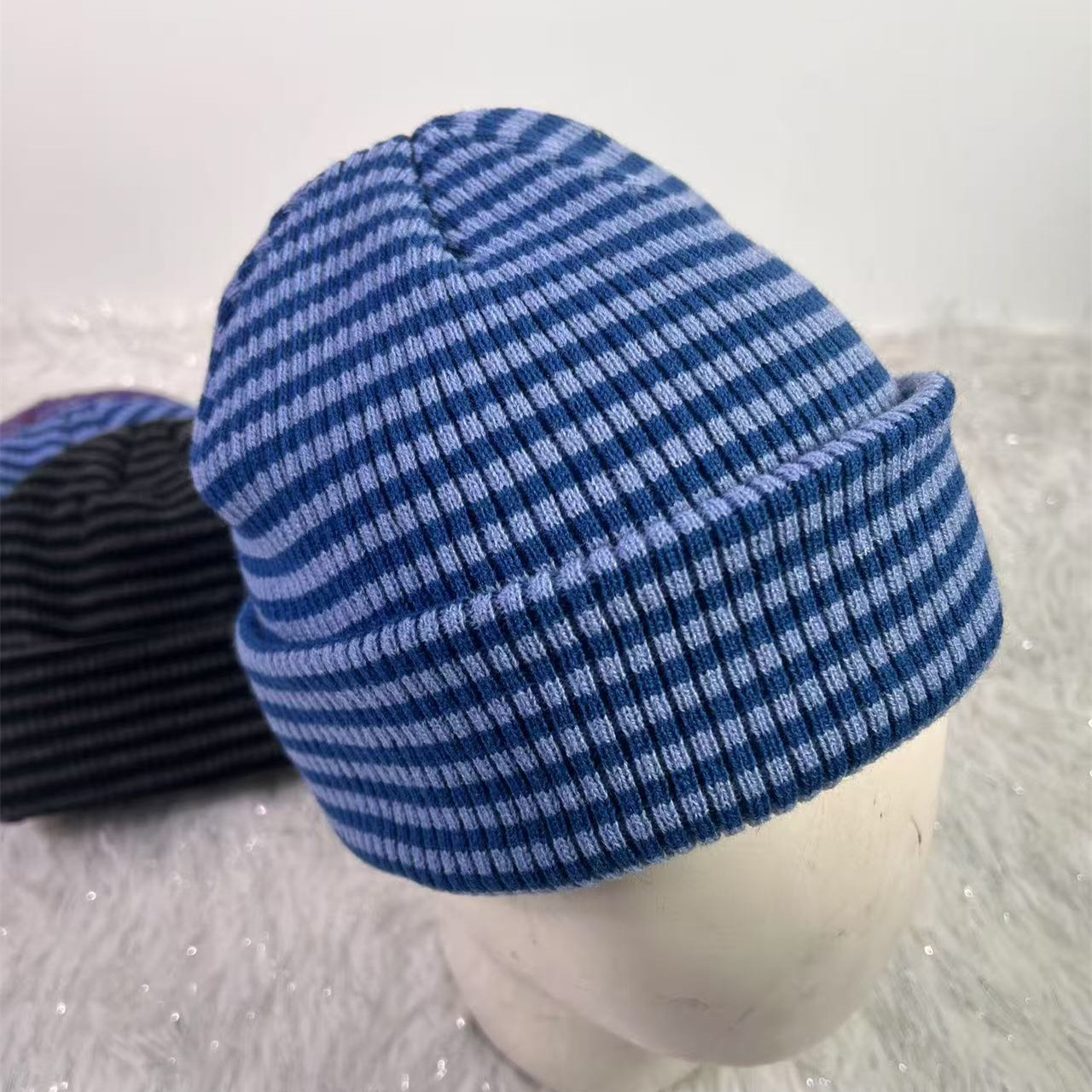 Factory stock knit hat, versatile striped, excellent elasticity, double-layered warmth, supportive custom and color