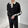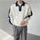 Herenkleding Herfst en winter gestreepte contrasterende kleur gebreide poloshirt heren stijl modetrend all match design halve rits jas trend