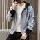 Herenkleding Denimjack Heren Tweedelig Capuchon Contrasterende Kleur Stijl Trendy Losse Casual Jas