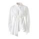 Hoogwaardig onregelmatig fishtail-ontwerp shirt voor dames in de lente en zomer met nauwsluitende taille, tops met polokraag en lange mouwen