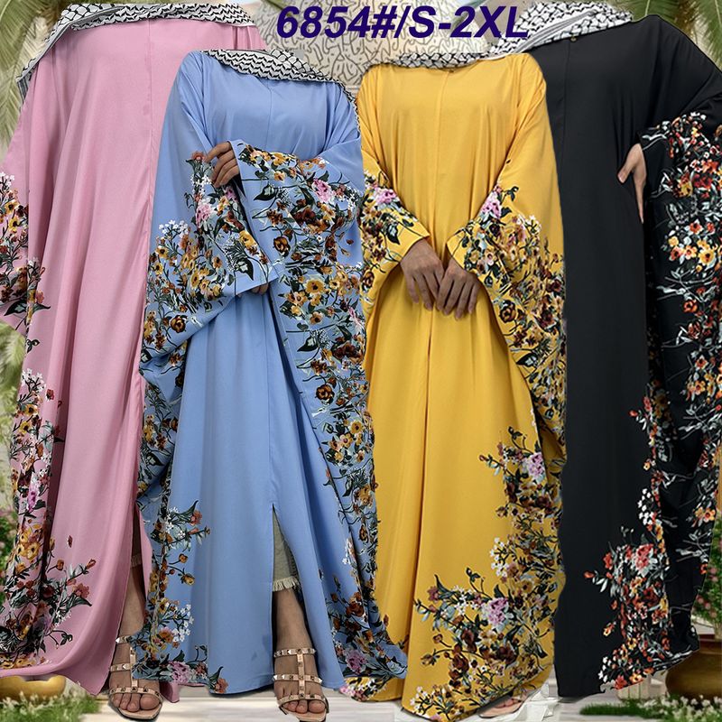 Hot Seller Vleermuismouwen Vlinder Abaya Femme Bloemenprint Kebaya Middenzoom Split Kaftan Jurken Voor Eid Marokkaanse Kaftan Maxi_voghion.com