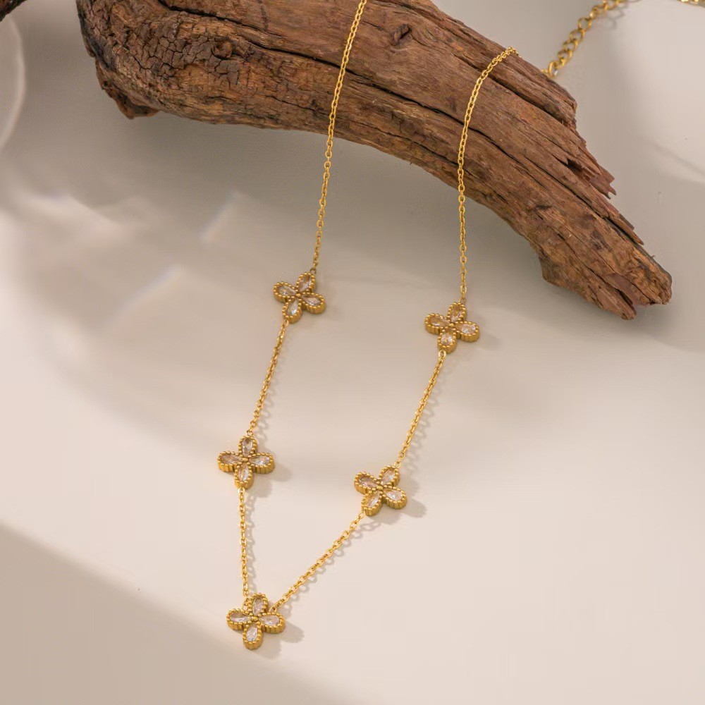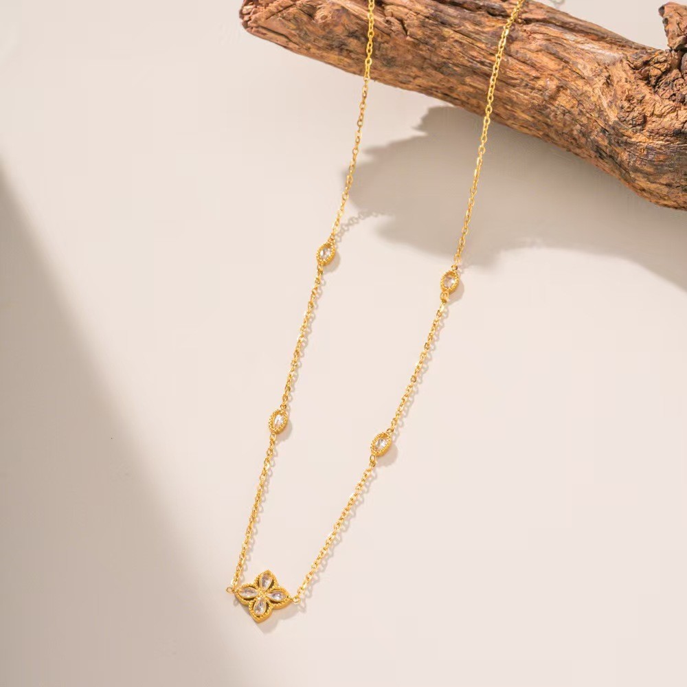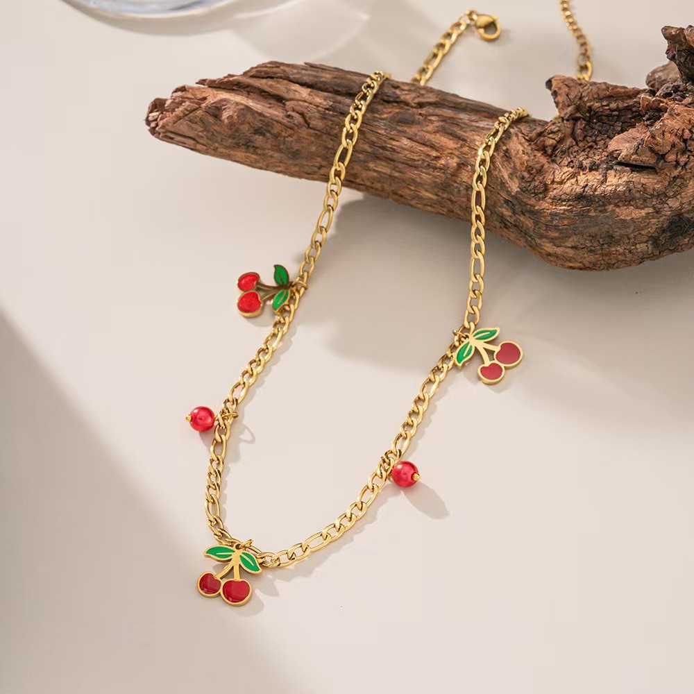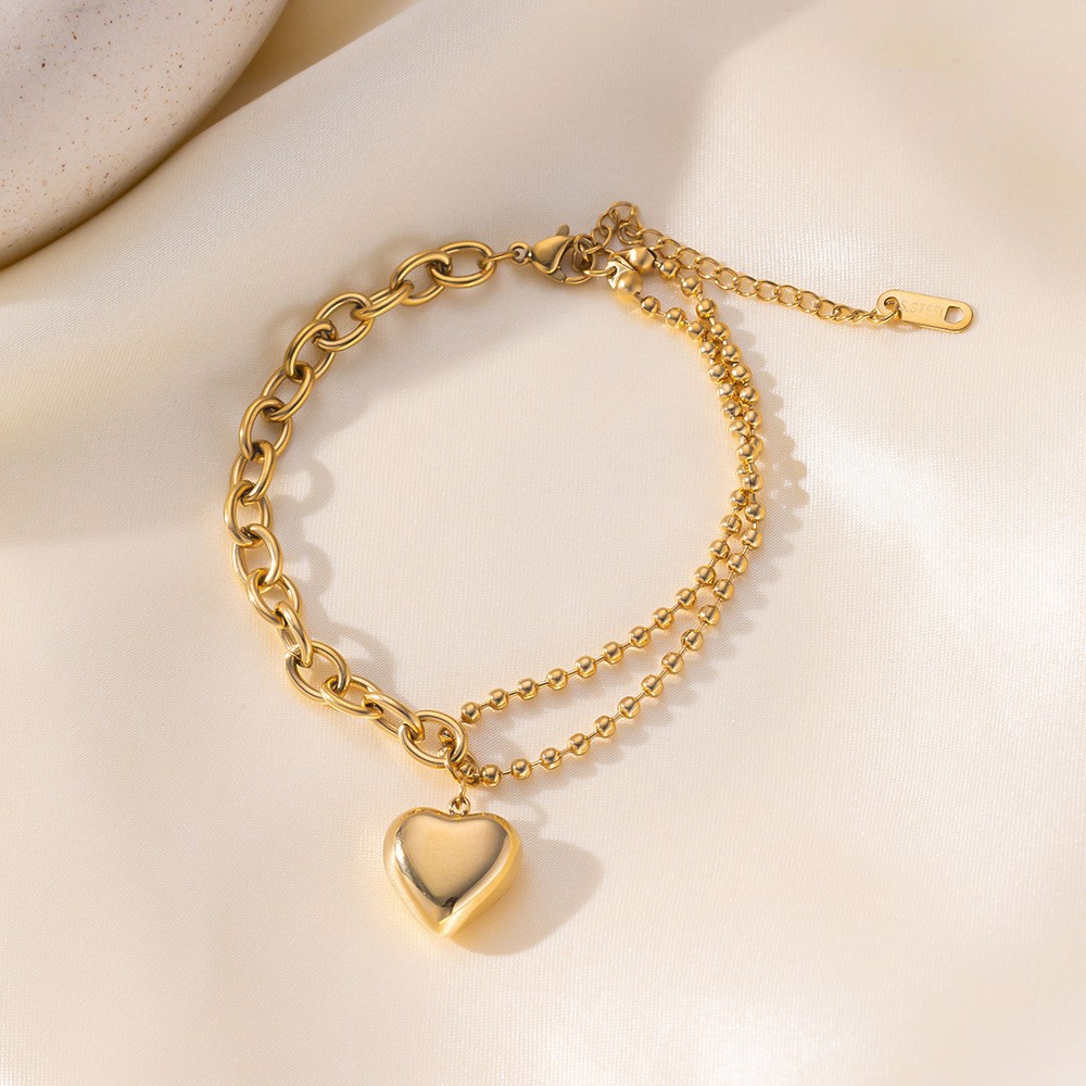 Cross-border bestseller Roman titanium steel necklace for women, niche light luxury heart-shaped 18k gold fashion trendy jewelry set