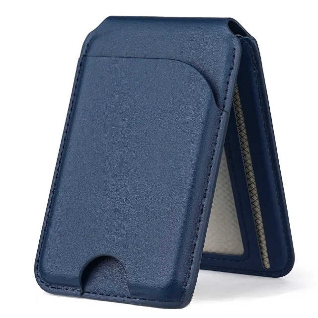 Magnetische telefoonhoes met kaarthouder en verstelbare standaard.