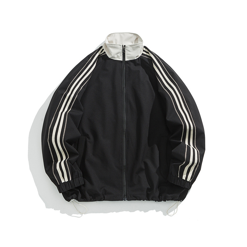 Men's Jacket 2024 New Youth Thin Loose Three Bar Sports Hoodie Windproof Coat