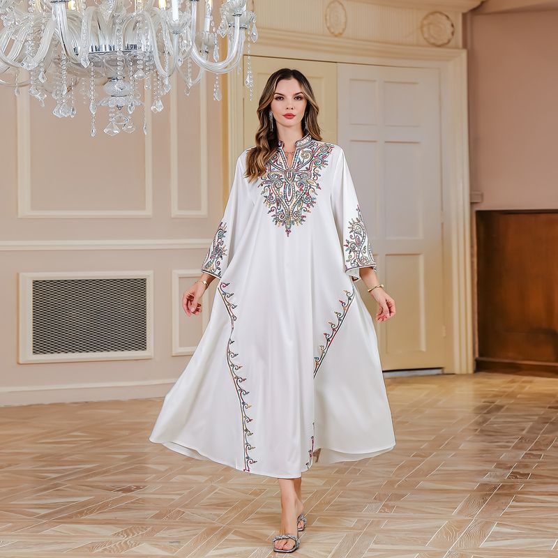 Moslim Abaya Touw Borduurwerk Vrouwen Gewaad Traditioneel, Modern, Prachtig, Ramadan
