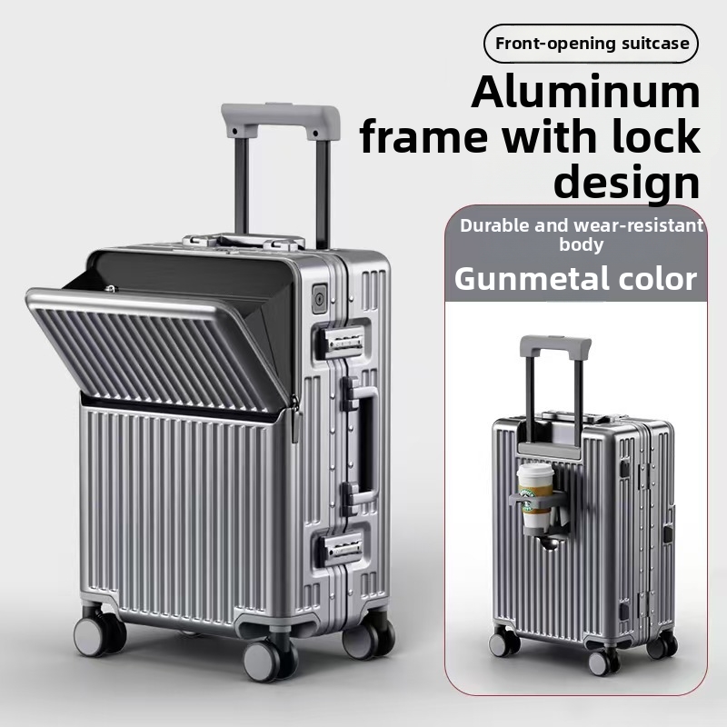 Multifunctionele koffer met aluminium frame, opening aan de voorkant, grote capaciteit, schokbestendig, geschikt voor studenten, 20 inch, voor heren en dames, reisformaat 24 inch