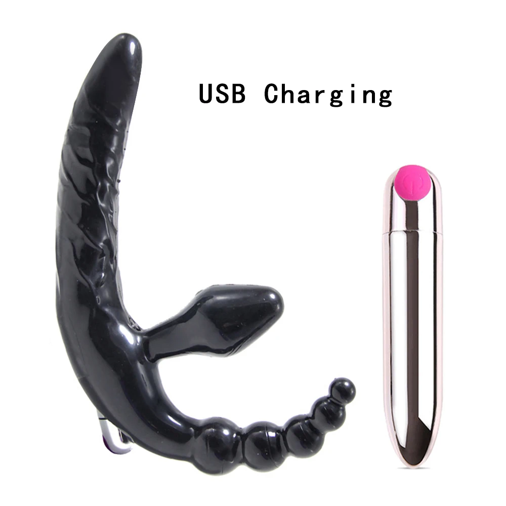 Strapless Strapon Dildo Vibrator 4 in 1 Sex Toys for Adult Double Penetration Anal Plug Anal Beads Vibrators for Women Lesbian