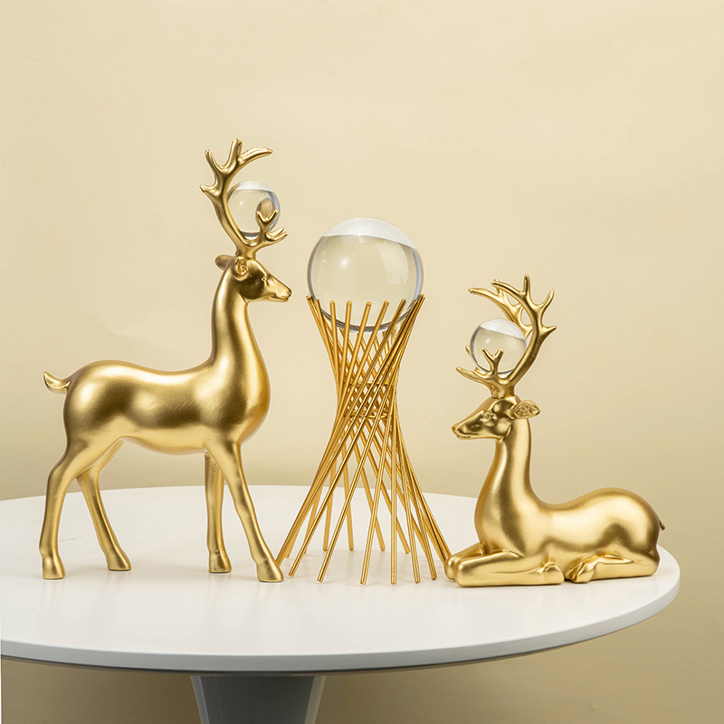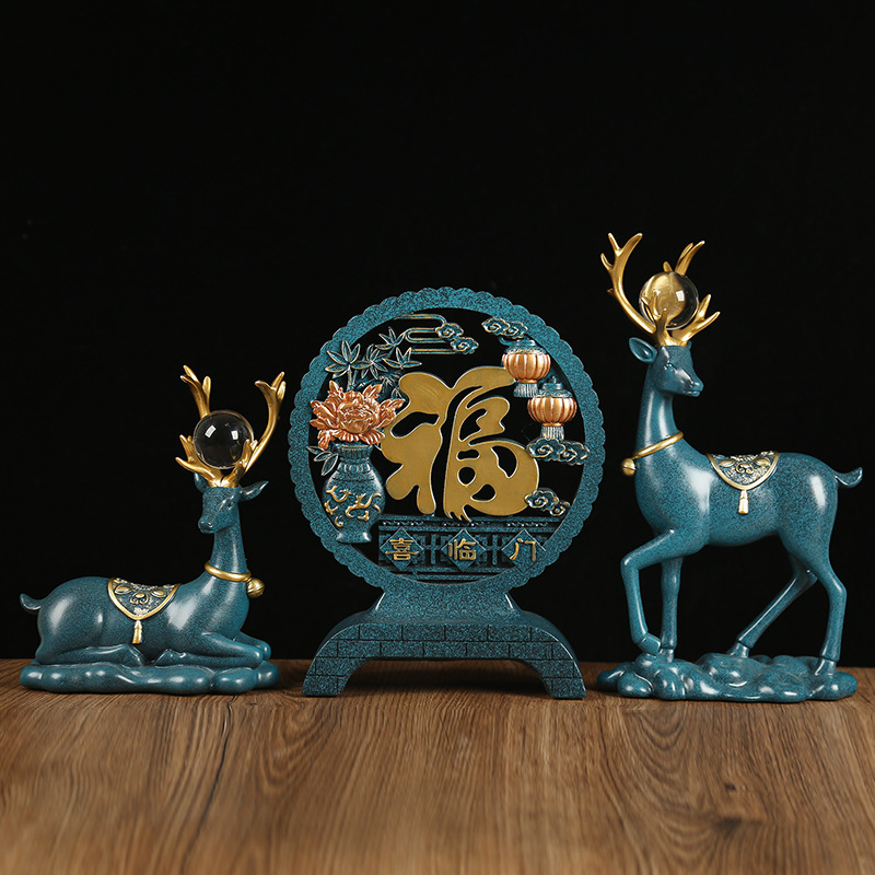Hars Ambachten Fu Zi Pai Herten Driedelige Set Decoratie Thuis, Woonkamer, Entree, TV-kast Decoratie, Cadeaucadeaus