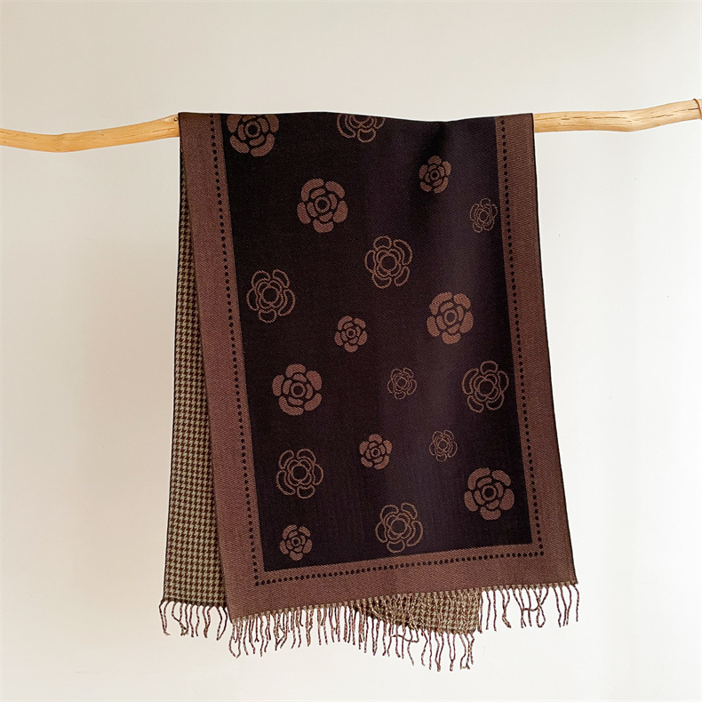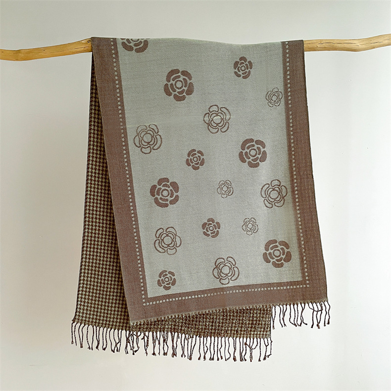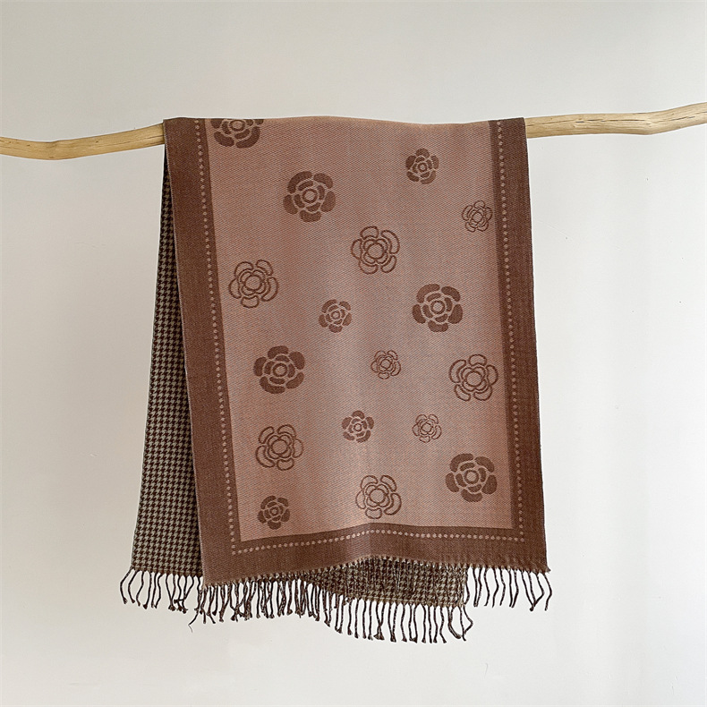 Sjaal voor dames, herfst en winter nieuwe stijl, gewikkeld in kerngaas, cameliabloem, duizend vogelraster, dubbelzijdig