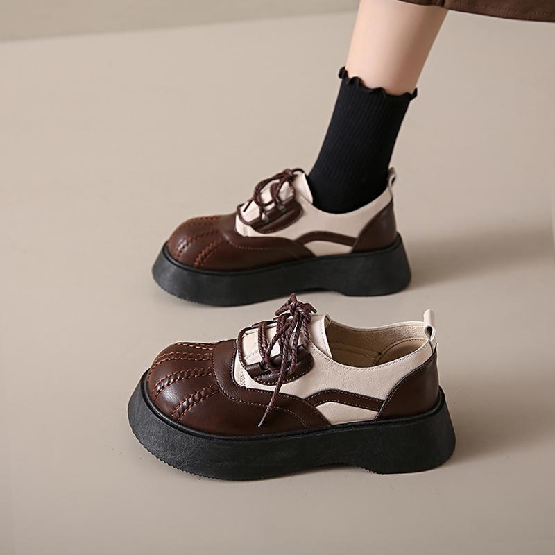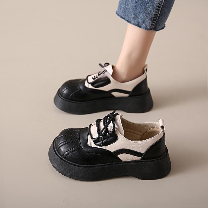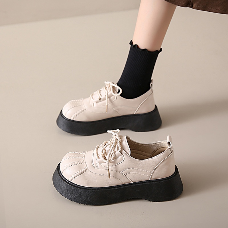 Shell Toe Dames Leren Franse Retro Dikke Zool Casual Enkel Schoenen Britse Stijl Leuke College Studenten Loafers