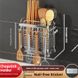 Ruimte aluminium wandgemonteerde keukenorganizer - Kruidenrek zonder boren met verstelbare planken en keukengereihaken (opties voor eetstokjeshouder en kruidenrooster)
