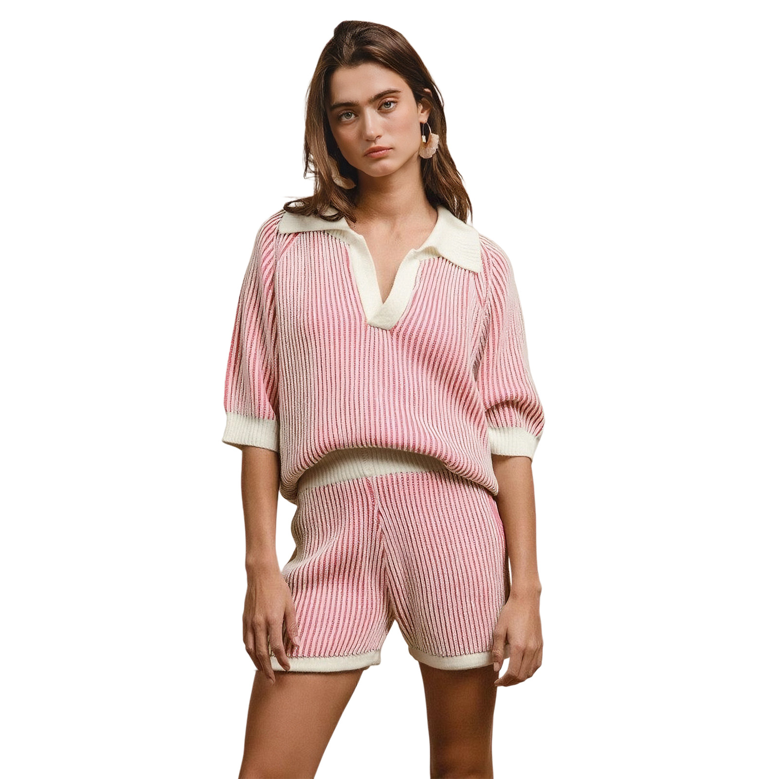 Dameskleding Comfortabele losse kleur bijpassende gestreepte gebreide trui Halve mouw trui Twee stukken