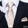 The set includes a tie, a square scarf, and cufflinks.