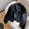 Vintage stijl PU leren damesjack - Losse pasvorm korte bikerjack met gekartelde revers, zwart/bruin/Ankara rood (maten L-3XL)