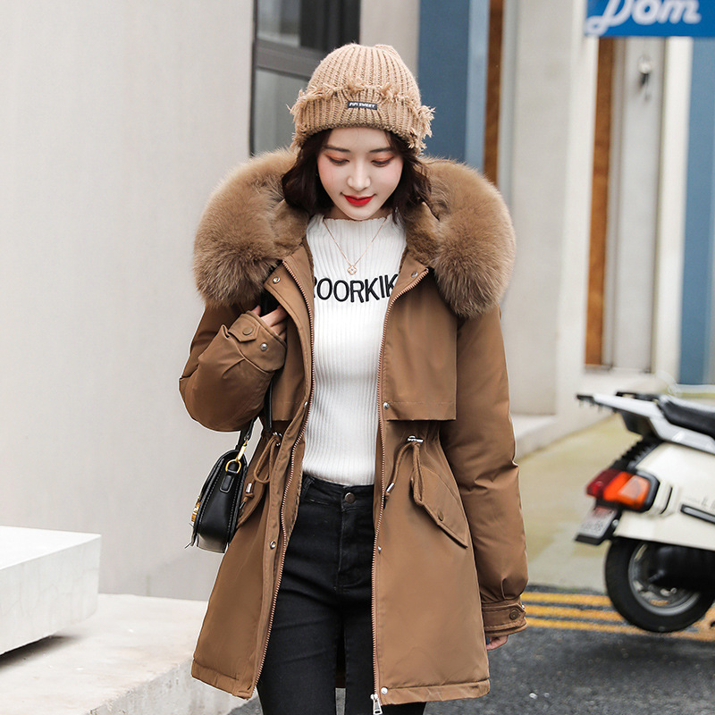 Dameskleding Pluche Parka Dames Medium Lengte 2024 Winter Nieuwe Stijl Losse Grote Bontkraag Mode Verdikte Katoenen Jas