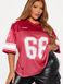Dameskleding Splicing Letter Printing Losse Sport Stijl Jersey Korte Mouw T-shirt
