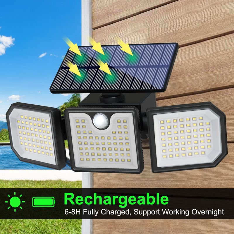 Solar Light Outdoor Three-Head Sensor Floodlight Remote Control Waterproof Spotlight Garden Lighting Street Light Emergency Light